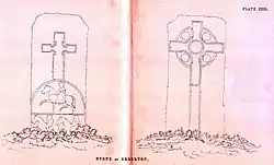 Un autre fragment plus grand, appelé la Boar Stone (pierre au sanglier), a été identifié comme étant un sarcophage couvert avec des images d'un sanglier et de créatures ressemblants à des loups. Le fragment dit Calf Stone (pierre au veau) montre qu'elle fait partie d'un mausolée; on y trouve un taureau et une vache s'occupant de son veau. On a reconnu dans d'autres pièces des indicateurs de tombe, gravés avec de simples croix.