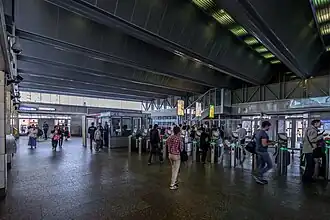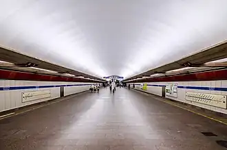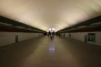 Elle dispose d'un bâtiment d'accès, situé en surface au sud de la station, en lien avec le quai par un tunnel en pente équipé de trois escaliers mécaniques et prolongé par un escalier fixe[2].