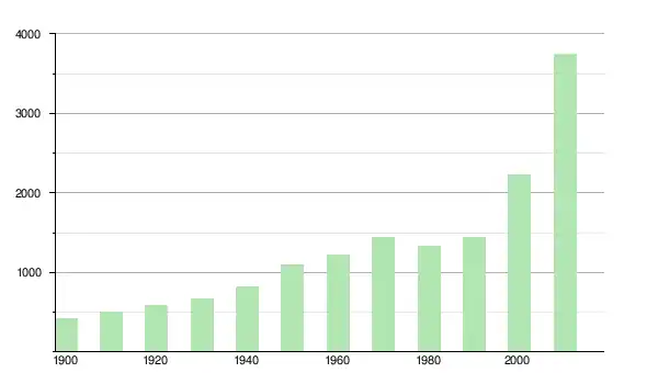 | 1950 | 1 094 | ▲ +32,45 % | |