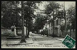 Carte postale - Clamart - La rue de la Forêt et la statue de Schneider.