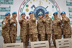- ↑ (en) « 78 Pakistan Army women peacekeepers serving with distinction across the world », The Express Tribune, (consulté le )