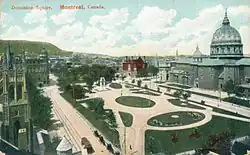 L'année suivante (1870), les terrains sont donc achetés et des plantations sont effectuées. En 1872, le square reçoit le nom de « square Dominion » quand la ville de Montréal décide d'aménager une grande place sur le lieu d’un ancien cimetière catholique de Montréal. Cette appellation provient du Dominion du Canada, formé des quatre provinces composant la confédération canadienne en 1867.