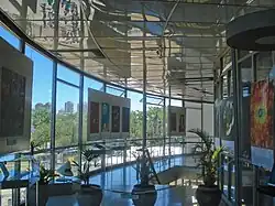 Le bâtiment est divisé en cinq étages, reliés entre eux par six escaliers, dont un hélicoïdal), et une salle circulaire de 20 mètres de diamètre. La coupole est une demi-sphère recouverte à l'intérieur de plusieurs couches d'aluminium qui servent d'écran.