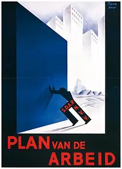 Le Plan de Man ou Plan du travail (en néerlandais : Plan van de Arbeid ), est une politique économique conçue en 1933 par le politicien belge Henri de Man du Parti ouvrier belge (POB) pour lutter contre la situation économique que la Belgique a connue au lendemain de la Grande Dépression . Le plan, décrit comme un "plan de travail", est l'un des premiers exemples de la doctrine de de Man du " planisme " (planification de l'État). Cette politique vise à "inculquer un système économique mixte" par la création "d'un secteur nationalisé couvrant l'organisation du crédit et les principales industries qui ont déjà en réalité été monopolisées".