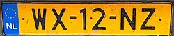 | 1999–2008 | 6 | En 2000, le style de licence d'admission contrôlées (GAIK; Gecontroleerde Afgave en Inname van Kentekenplaten) a commencé avec la série "F" de cette série. Toutes les plaques d'immatriculation, à l'exception de certains enregistrements d'anciens combattants, ont été mandatées pour passer aux plaques GAIK.