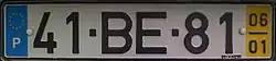 En application au sein des pays de l'Union Européenne, le début de la plaque porte l'initiale P du Portugal, avec l’exception des plaques pour les forces américaines au Portugal qui elles possèdent un 'U'.