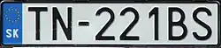 Elle est structurée: drapeau européen et code SK, code du district en deux lettres, blason de la Slovaquie, trois chiffres et deux lettres[1].