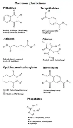 Par exemple, le PVC brut est rigide ; par ajout de plastifiants tels les phtalates d'alkyle ou les phosphates, il devient souple.
