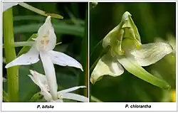 La Platanthère à deux feuilles se confond facilement avec l'orchis verdâtre. Elle s'en distingue par ses loges polliniques parallèles (celles de l'orchis verdâtre sont divergentes).