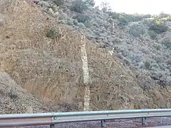| Forme | Les dykes sont en forme de feuille et planaires. Les dykes épais sont généralement droits, mais la plupart sont sinueux. |