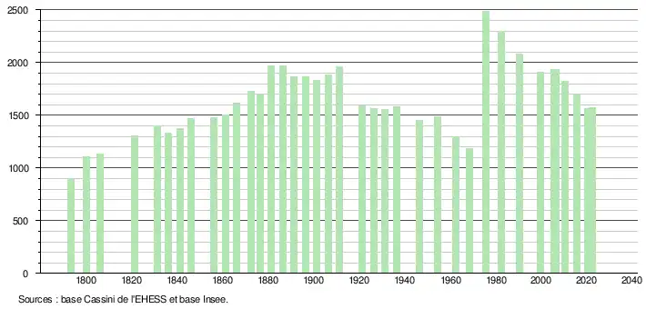 - ↑ Fiches Insee - Populations de référence de la commune pour les années 2006, 2007, 2008, 2009, 2010, 2011, 2012, 2013, 2014, 2015, 2016, 2017, 2018, 2019, 2020, 2021 et 2022.