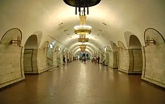 Mise en service en 1976, elle est desservie par les rames de la ligne M2. Le service est arrêté ou perturbé depuis l'invasion de l'Ukraine par la Russie en 2022.