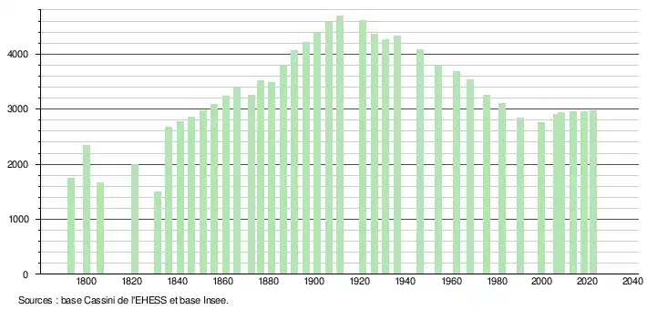 2 963 hab. (2022 en évolution de −0,57 % par rapport à 2016en évolution de −0,57 % par rapport à 2016)
