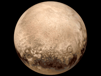 Pluton est principalement composée de roche et de glace de méthane, mais aussi de glace d'eau et d'azote gelé. Son diamètre est d'environ les deux tiers de celui de la Lune.