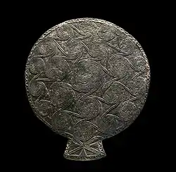 L'interprétation des miroirs est une hypothèse plus intéressante. Les décorations, souvent complexes, sont compatibles avec un tel rôle. Les miroirs préhistoriques en métal sont souvent décorés sur leur face arrière. La céramique ne réfléchit pas mais il a été suggéré que remplis d'eau ou d'huile ces objets pourraient faire office de miroir. Une étude a conclu que la meilleure réflexion s'obtenait avec de l'huile d'olive noircie[1].
