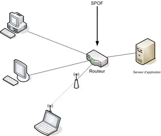 Un point de défaillance unique (single point of failure ou SPOF en anglais) est un point d'un système informatique dont le reste du système est dépendant et dont une panne entraîne l'arrêt complet du système.