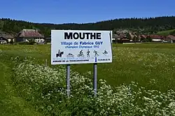 - Sur ce même panneau, on peut lire « Village de Fabien Franck, champion olympique de saut à ski », faisant référence à un panneau existant réellement à l'entrée de Mouthe qui indique « Mouthe Village de Fabrice Guy, champion olympique 1992 »[Note 1].