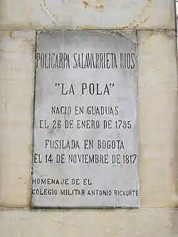 Plus de soixante-dix ans après la mort de La Pola, en vertu de la loi 15 du , signée par le président Miguel Antonio Caro, 10 000 pesos ont été attribués pour ériger un monument dans la ville de Guaduas en l'honneur de Policarpa Salavarrieta. Miguel Antonio Caro a déclaré à cette occasion que « la mémoire de cette martyre de la liberté doit être perpétuée aux générations futures comme un exemple de vrai patriotisme et de sacrifice plus désintéressé et fructueux pour la cause de la République »[2].