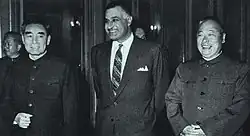 Pour autant, dans les années 1950, les deux États ont des positions aux antipodes. Alors qu'en Égypte, le Mouvement des officiers libres menés par Nasser renverse la monarchie pro-occidentale en 1952, puis remporte une victoire décisive contre les forces franco-britannique en 1956, l'Irak, toujours dirigée par une monarchie pro-britannique, intègre le Pacte de Bagdad en février 1955[57]. Cette alliance militaire intégrant Royaume d'Irak, la Turquie, le Pakistan, l'État impérial d'Iran et Royaume-Uni, fait de l’Irak le premier allié de l’Occident, moins deux ans avant la crise du canal de Suez[57]. Toutefois, bien qu'officiellement pro-occidentale, la monarchie irakienne sait que l'intervention militaire en 1956 en Égypte va créer une importante colère populaire en Irak, et s'inquiète de sa propre sécurité et stabilité[58]. L'ambivalence de l'Irak est illustrée par la rupture de ses relations diplomatiques avec la France en 1956 en réaction à la crise de Suez[59]. Parallèlement, bien qu'officiellement opposés, la monarchie irakienne et la république égyptienne restent alliées contre Israël, l'Irak ayant notamment chassé les juifs de son territoire en 1951, après la défaite de la coalition arabe lors de la guerre israélo-arabe de 1948-1949[57].