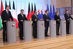 Le groupe de Visegrad est une forme de coopération régionale entre la Pologne, la République tchèque, la Slovaquie et la Hongrie, fonctionnant depuis 1991. Au niveau politique, la coopération de Visegrad comprend des réunions au niveau des présidents, des premiers ministres, des présidents de parlement et des ministres[40].