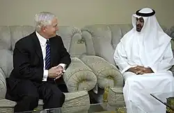 Au sein du Gulf Cooperation Council (GCC), les Émirats arabes unis œuvrent pour que la région du Golfe soit vide d’armes nucléaires et traite avec l’Iran sur le sujet. Avec les États-Unis, les ÉAU souhaitent que l’intégrité territoriale de l’Irak soit préservée et que le processus politique enclenché par les États-Unis garantisse la stabilité dans le pays et intègre tous les citoyens irakiens. Les navires de guerre américains visitent le port des Émirats arabes unis[Lequel ?] plus que n’importe quel autre port au monde. 600 d’entre eux s’y sont rendus en 2006 ;