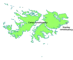Le parlement est monocaméral. Son unique chambre, l'Assemblée législative des îles Malouines, est composée de 11 membres dont 8 élus pour 4 ans selon un mode de scrutin plurinominal majoritaire dans 2 circonscriptions de 5 et 3 sièges chacune, correspondant à la capitale, Stanley et au reste du territoire, dit Camp. Les habitants votent pour autant de candidats qu'il y a de sièges dans leur circonscription, et ceux ayant réuni le plus de suffrages sont déclarés élus. À ces 8 membres élus s'ajoutent les membres du Conseil exécutif, qui siègent mais n'ont pas le droit de vote.