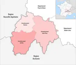 Le département français du Cantal est un département créé le en application de la loi du , à partir de l'ancienne province d'Auvergne. Les 246 actuelles communes, dont presque toutes sont regroupées en intercommunalités, sont organisées en 15 cantons permettant d'élire les conseillers départementaux. La représentation dans les instances régionales est quant à elle assurée par 4 conseillers régionaux. Le département est également découpé en 2 circonscriptions législatives, et est représenté au niveau national par deux députés et deux sénateurs.