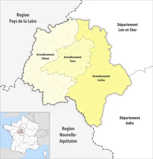 La préfecture d'Indre-et-Loire est localisée à Tours. Le département possède en outre deux sous-préfectures à Chinon et Loches.