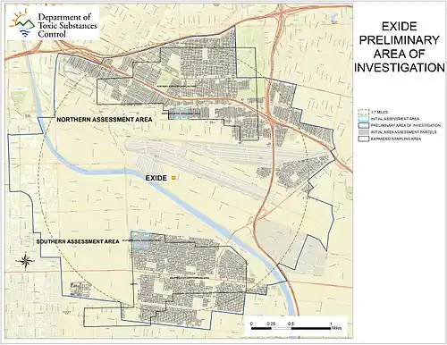 C'est le plus grand effort de dépollution de ce type dans l'histoire de la Californie, il englobe sept quartiers du comté de Los Angeles. « L'État tient Exide pour responsable de cette contamination et, en vertu d'une ordonnance du tribunal, l'entreprise doit livrer d'ici mai 2019 un plan de nettoyage du plomb dans la communauté environnante »[29]. Les régulateurs de l'État de Californie estiment que les opérations d'Exide pourraient avoir menacé la santé d'environ 100 000 personnes et pollué environ 10 000 propriétés résidentielles. Un total de 192 millions de dollars a été autorisé par l'État pour cet effort de nettoyage massif ; et 176,6 millions de dollars ont été approuvés par le gouverneur Jerry Brown en avril 2016.