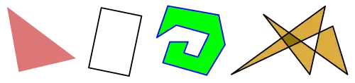 Dans le cas des polygones simples, on confond souvent le polygone et son intérieur en appelant polygone la surface délimitée par la ligne polygonale fermée[1].