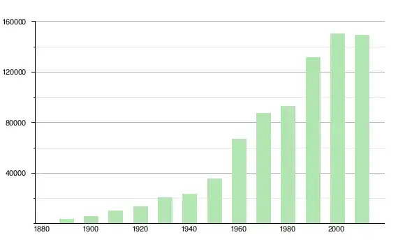 | 1970 | 87 384 | ▲ +30,12 % | |