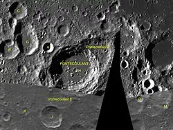 Pontécoulant est un cratère d'impact lunaire situé au sud-est de la face visible de la Lune. Il se trouve au sud de la Mare Australe près des cratères Lyot et Hannon. Le contour du cratère est érodé et presque circulaire avec un rebord en terrasses. L'intérieur du cratère est presque entièrement plat avec néanmoins quelques pics dans sa partie orientale et un craterlet près du centre.