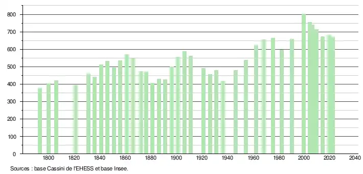 - ↑ Population municipale de référence en vigueur au 1er janvier 2025, millésimée 2022, définie dans les limites territoriales en vigueur au 1er janvier 2024, date de référence statistique : 1er janvier 2022.