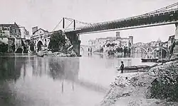 Les trois arches restantes et la passerelle suspendue, vers 1875.
