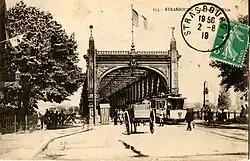 Le nouveau pont se trouvait en amont du pont ferroviaire de Kehl de 1861 et fut inauguré le . Le montant d'1,7 million de Reichsmark fut supporté à hauteur de 630 000 Reichsmark par le Grand-duché de Bade et le Reichsland d'Alsace-Lorraine. La ville de Strasbourg contribua avec un montant de 228 000 Reichsmark et la compagnie de tramways avec 112 000 Reichsmark. Une ligne du Tramway de Strasbourg permit une prolongation vers Kehl.