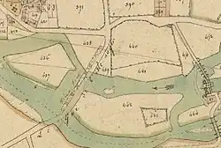 - ↑ Le pont, dans l'angle en bas à gauche de la carte, est légendé « Z. Pont de l'Isle Oger ».