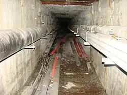 Le béton a été coulé en laissant des tubes dans les massifs, de manière à injecter sous la fondation un mortier ayant pour but de combler le réseau de drainage et de renforcer le sol, à raison de 150 à 200 m3 de mortier sous chaque massif.