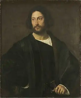 Un temps elle fut considérée, à tort, comme le portrait de Pierre l'Arétin.