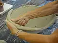 Certaines poteries africaines sont modelées dans une corbeille tressée, la jarre est roulée dans la corbeille tandis que le potier frappe l'intérieur de la paroi avec un galet. De la même manière ces jarres conservent l'empreinte de la trame du panier.