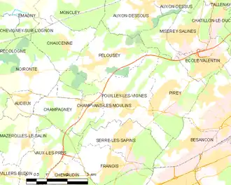 - ↑ « Distance entre Pouilley-les-Vignes et Besançon », sur fr.distance.to (consulté le ).