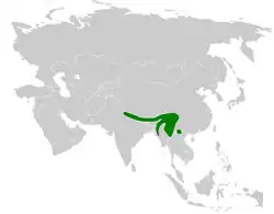 Cette espèce vit au Bhoutan, en Birmanie, en Chine, en Inde, au Népal et au Vietnam.