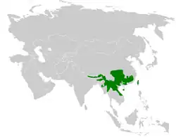Cette espèce vit au Bangladesh, au Bhoutan, en Birmanie, en Chine, en Inde, au Laos, au Népal, à Taïwan, en Thaïlande et au Vietnam.