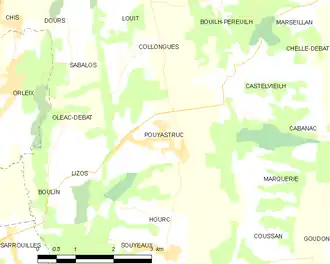 Pouyastruc est limitrophe de huit autres communes dont Bouilh-Péreuilh au nord-est par un simple quadripoint.