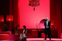 - Scène 4 - 1953 : la Duchesse fait appel au room service de son hôtel. Lorsque le serveur paraît, elle lui propose de rester auprès d’elle. Bien que ce dernier craigne pour son travail, il se laisse convaincre par une importante somme d’argent. Perdant contrôle, la Duchesse se jette dans ses bras pour une fougueuse étreinte (« How may I help you ? »).