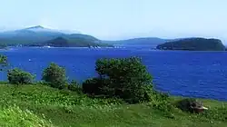 - ↑ La commune est à gauche du cadre ainsi que dernière le mont au second plan gauche.
