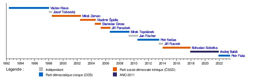 Ce tableau recense les présidents du gouvernement de la Tchéquie depuis la partition de la Tchécoslovaquie en 1993.