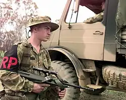 Les membres des sections de prévôté régimentaires portent l'uniforme de combat règlementaire et sont identifiables grâce à un brassard où sont inscrites les lettres « RP », porté au bras droit[3].