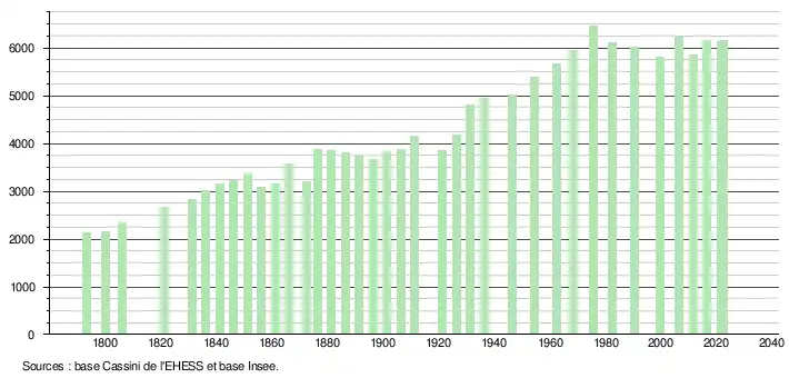 - ↑ Fiches Insee - Populations de référence de la commune pour les années 2006, 2007, 2008, 2009, 2010, 2011, 2012, 2013, 2014, 2015, 2016, 2017, 2018, 2019, 2020, 2021 et 2022.