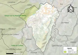 Une ZNIEFF de type 2[Note 3] est recensée sur la commune[14] : le « versant sud du massif du Madres » (27 267 ha), couvrant 27 communes du département[15].