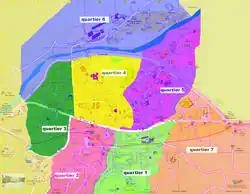 Quartier 2 : c'est dans ce quartier que se trouvait l'ancienne mairie qui a été remplacée par la mairie de quartier. Elle est bordée au nord par l'avenue du Général de Gaulle. Assez atypique, un stade est implanté au milieu du quartier.